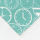 This design depicts a seamless pattern of various clock faces and an hourglass. The clocks are in various sizes and styles, some with Roman numerals, some with Arabic numerals, and some with just hands. The hourglass is in the centre of the image and is filled with sand. The background is transparent, giving the image a digital feel. The image is a playful and whimsical representation of time.
