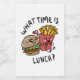 What time is lunch? Funny hamburger and french fries in love. A perfect match for kids as well as for adults.