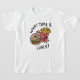 The t-shirt feels and looks great quality, a good thick cotton. It will be a little big for my son, but that means he will be able to wear it and not out grow it too soon. The print was as described on the order when personalised. True size, shape and colour T-shirt- thanks.
