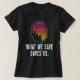 Kiwis wear all black as the t shirt is with Green lettering to match the environment and yellow for joy and purple thistle to match my hair.