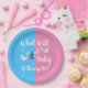 What will baby be? Unique blue and pink gender reveal party paper plates with cute illustrations of storks delivering a baby for a surprise baby boy or girl gender revelation celebration. Personalise it with the baby's surname.