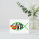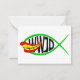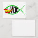 A parody design of the Ichthys (Jesus Fish). The design of the Ichthys fish, mashed up with the Joker Fish from a comic book cartoon. WWJD in black text is inside the fishing, asking, "What Would Joker Do?"