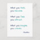 "What you think, you become. What you feel, you attract. What you imagine, you create." True wisdom by Gautam Buddha - a quote on life's truth about you, a quote to help you understand you & your life, better; a quote on your reality. Featured here on a cool custom postcard with your custom message / note in the back in elegant faux gold script / typography. Simply type in your message / note, to personalise. Makes a great gift for friends & family, for graduation, birthday, christmas, holidays, new years, and more.