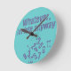 This wall clock is customisable it says Whatever, Im late anyway with a pile of numbers in the bottom corner. You may change colour of clock and wording