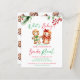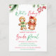 What's baking gingerbread cookies Christmas gender reveal party budget invitation, minimalist modern watercolor boy and girl gingerbread cookies green and red gender reveal invitation.