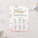 This modern floral "What's In Your Purse" features a pink floral background with golden glitter splashes. The text is written in a mix of a playful calligraphy font and a modern sans font, this What's In Your Purse card is personalised with the Bride-to-be name and the Bridal Shower date.