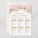 Feminine bridal shower game featuring pink & blush watercolor flowers and gold confetti sprinkles