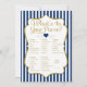 What's In Your Purse game for baby shower and bridal shower. With navy blue and white stripes and gold faux glitter accent and gold text. This elegant striped Purse Game is sure to bring laughter and smiles to your next shower.