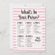 Pink and white What's In Your Purse game for baby showers or bridal showers. Hand drawn white horizontal stripes.