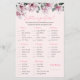 This is a romantic floral bridal shower "What's in your purse?" game card featuring sweet pink magnolia flowers on a creamy blush background with modern handwritten script calligraphy for an elegant and modern design.