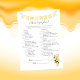 A fun game for the baby shower is the What's on your phone? game. This game features a yellow banner at top and a teddy bear with a honey bee. On the reverse is a girl teddy bear leaning on a honey barrel watching a honey bee with templates.