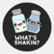 What's Shakin Salt And Pepper Shaker Pun Dark BG Classic Round Sticker