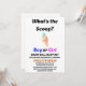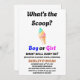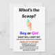 Beautifully designed 'What's the Scoop?' gender reveal party invitation. This invitation sets the tone for a memorable gender reveal where loved ones and friends gather to unveil the exciting news of your baby's gender. Feel free to customise/personalise this invitation to your liking. Enjoy your gender reveal!