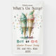 Cute and modern and trendy gender reveal party Welcome Foam Board featuring a watercolor illustration of ice cream in waffle cones in pink and blue with gold ice cream splash. The text says Welcome "What's the scoop? Boy or Girl?" Perfect for a gender reveal party in the summer.