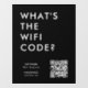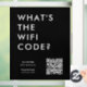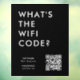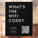 A simple custom black "What's the WiFi Code?" scan to connect to Wifi business vinyl window cling decal sign template in a modern minimalist style which can be easily updated with your QR code, network details or custom text.