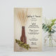 Customise the charming Wheat and Hops Brewery Wedding Menu with the details of the meal that you will serve at your beer theme bridal shower luncheon, post wedding brunch or marriage reception dinner by adding the salad or first course, entree or second course and dessert or third course. Personalise it with the names of the bride and groom, event venue and date. This rustic custom wedding menu features a photograph of a brown glass beer bottle, dried white, dried green hop vine and white bridal veil. Perfect inspo for the couple who will be serving craft beers or micro brews at their gathering.