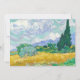 Wheat Field with Cypresses (1889) by Vincent van Gogh is a dynamic post-impressionist landscape capturing the vibrant movement of nature. Painted during his stay at the Saint-Paul-de-Mausole asylum in Saint-Rémy-de-Provence, the artwork features a golden wheat field swaying in the breeze, punctuated by tall, dark green cypress trees reaching towards a swirling blue sky. The expressive brushstrokes and rich colour palette create a sense of energy and emotion, reflecting Van Gogh’s deep connection to the natural world. This masterpiece exemplifies his signature style, blending bold contrasts and rhythmic movement to bring the scene to life.