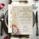 Lovely wildflowers embellish this wedding menu, with a pre-written thank you message for your guests which can be easily changed with your own message and a linked leaf monogram on the back. Designed to coordinate with the Springtime Wildflowers Wedding Collection. To change details, click «Personalize». To move the text or change the text size, font, or color click «Click to customize further»