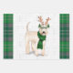 An adorable Wheaten Terrier dog is ready for the holiday season with his antlers and a winter scarf. This cute Christmas dog is paired with a green and silver plaid on this set of gift wrap for the dog lover.