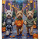 Adorable Wheaten Terriers dressed in playful Halloween costumes carry pumpkin buckets while trick-or-treating under the moonlit sky. This festive design highlights the breed’s soft, wavy golden coat, bright eyes, and friendly personality, perfectly capturing the spooky yet fun atmosphere of Halloween night. A heartwarming celebration for Wheaten Terrier fans, dog lovers, and Halloween enthusiasts alike.