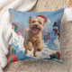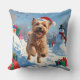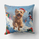 Wheaten Terrier Running in Snow with Christmas Hat Cushion