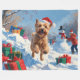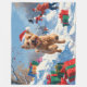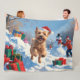 Wheaten Terrier Running in Snow with Christmas Hat Fleece Blanket