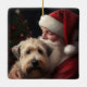 Wheaton Terrier With Santa Claus Festive Christmas Ceramic Ornament