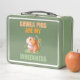 This is a standard metal lunchbox that appears to work just fine. We designed this box ourselves with an uploaded photo and custom text on the front and back. It looks absolutely beautiful except the front of the lunchbox is not centered like it shows in the photo. The print borders don't align with the inset flat part of the box where the preview photo online showed it perfectly centered in there. The back looks nice and centered though.