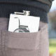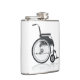 A real looking wheelchair is what this design is about. The wheelchair is side on and looks very authentic. The wheelchair is empty and waiting for someone to sit in it. This wheelchair design looks great on this flask. Perfect for yourself or as a gift