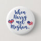 NewParkLane - Royal Wedding Button, with fun quote 'When Harry met Meghan', in blue script typography, and the flags of theUnited Kingdom and the United States in heart shapes.