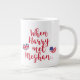 NewParkLane - Royal Wedding Jumbo Mug, with fun quote 'When Harry met Meghan', in red script typography, and the flags of theUnited Kingdom and the United States in heart shapes.