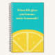 Brighten your day and embrace the power of positive thinking with this adorable and colourful notebook, featuring the timeless inspirational saying, "When life gives you lemons, make lemonade," alongside a cheerful illustration of a sliced lemon. This delightful design brings a fresh and uplifting vibe to your daily routine, serving as a gentle reminder to stay motivated and find the sweetness in every situation. Whether you're jotting down to-do lists, reflecting on your goals, or brainstorming creative ideas, this notebook is the perfect companion for fostering a mindset of optimism and determination.