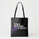 You've heard the popular quote, "When nothing goes right, go left." Here it is typographically, artistically presenting the saying in an eye-catching font, using bold colour and word play to show the inspiring message. It really pops on this tote bag, white and purple letters on black / black and purple letters on white.