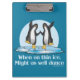 When on thin ice, might as well dance. Funny and witty slogan / saying with two penguins dancing together on cracked ice. What's the sense of worrying when you can't change the circumstances. Don't worry, be happy! With a blue background. Winter Penguin Design.