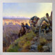 Charles (CM) Russell, the “cowboy artist”, created more than 2,000 paintings of cowboys, Indians, and landscapes set in the Western United States. He lived and worked among the cowboys and the Blood Indian tribe in his younger years. This image is called “When Shadows Hint Death” and depicts two lone cowboys seeing the shadows of an approaching Indian band.