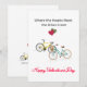 Front: "When the hearts meet, the bikes greet." The front of the card features a picture of two bikes meeting, with a text "Happy Valentine's Day" appearing beneath the picture.