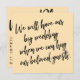 This suite's distinction is due to the bold, casual handwritten script font used for accent phrases. If you're in the position of needing to inform your wedding guests that you've had to change your big date, here is a bold option. In this piece, the hand-lettered script font was used to create simple typography graphics. On the front is "We will have our big wedding when we can hug our beloved guests" and on the back, "New Plan". Use the template fields to add your personal details and make this modern design your own. The background can be changed to any colour you prefer. Please reach out with any special requests or for customising assistance. // 105 //