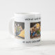 Jumbo mug with a 3-family photo collage and text, "When we have each other we have everything." Perfect gift for husband or wife or any member of your family.