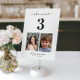 Decorate your wedding table with this number card, featuring bride and groom's childhood pictures and custom text of your choice. Easily add your own details by clicking on the "personalise" option.
