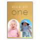 A modern, more original way to personalise your table numbers with childhood photos of bride and groom at that number age (the default is one).The placeholder photos of a little girl (the bride) and a little boy (the groom) are in the lower half. In the upper part, there is the message "when we were one" with the age written in black and the rest above, in smaller white caps (hand letters). The background is faux gold foil.
