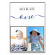 A modern, more original way to personalise your table numbers with childhood photos of bride and groom at that number age (the default is one).The placeholder photos of a little girl (the bride) and a little boy (the groom) are in black frames, in the lower half. In the upper part, there is the message "when we were one" with the age written in a navy blue handwriting script and the rest above, in smaller black caps (hand letters).