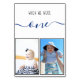 A modern, more original way to personalise your table numbers with childhood photos of bride and groom at that number age (the default is one).The placeholder photos of a little girl (the bride) and a little boy (the groom) are in black frames, in the lower half. In the upper part, there is the message "when we were one" with the age written in a navy blue handwriting script and the rest above, in smaller black caps (hand letters).