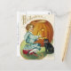 Vintage Halloween greeting card illustration with the inscription "when witches abound and ghosts are seen, your fate you will learn on halloween."