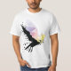 A striking half-and-half bird illustration that blends darkness with light. On one side, the bird appears as a shadowy crow in solid black, symbolizing mystery and transformation. On the other side, it transitions into a radiant, geometric dove filled with pastel gradients of yellow, pink, and lavender, outlined by soft purple waves. The fragmented effect where the two halves meet gives the impression of breaking free, evolution, and balance between opposites—light and dark, hope and despair, struggle and peace.