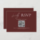 Modern love deserves a modern RSVP card. This elegant burgundy wedding RSVP card features a clean minimalist layout with timeless white typography and QR code. Ideal for contemporary, romantic, or upscale wedding themes, the design balances simplicity with emotional warmth. Customisable for your names, date, venue, and all key details.