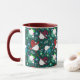 Cute gnomes this holiday season! Grab a cup of your favourite something warm in this fun mug! Gnomes in modern colours of teal, lime green, aqua blue, deep red and maroon surrounded by candy canes, snowflakes, poinsettia flowers and gifts. Great for gifting to kids and adults alike! Handlettered sayings include "where my gnomies at?" and "ho ho ho" . Non-traditional Forest WinterGreen Background. Choose Your Inside Colour!