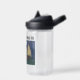 The bottle looks even better in real life. The ice cubes I put in lasts all day! I have my bottle with me all the time. It's summer and having something cold to drink feels amazing. With this bottle I always have something super cold. I have only tried the hot drink once and it lasted a long time as well. The color blue is a navy blue and the white printed on it is vibrant. It printed perfectly. I love my personalized smile water bottle.
