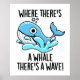 Where There's A Whale There's A Wave Funny Animal Pun features a cute whale making a big splash because he knows where there's a will there's a way . Perfect Puns gift for family and friends who love cute whale puns.