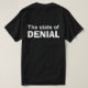 Which state has the most republicans, ask the front of this dark t shirt. Politically minded republicans and democrats will delight in the surprising answer on the back which implies GOP loyalists are in denial on many issues, including abortion, global warming, government spending, voting rights, immigration, and others. The design should have appeal to avid liberals, especially those espousing LGBQT rights, civil rights, pro-choice and many many others.