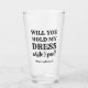 A custom funny bridesmaid, maid of honour proposal beer glass - "Will you hold my dress while I pee?" "Will you be my bridesmaid?"